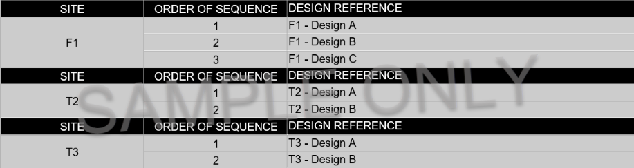 Site key and design reference: All banners and flags must be printed with the site key and design reference. See the example printed on vinyl below.