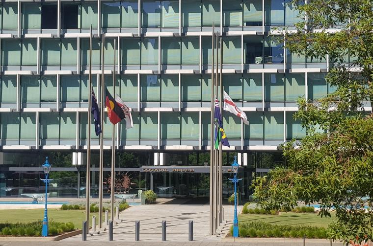Acting Chair Commissioner Gaye McMath said as a mark of respect to the victims, the City of Perth has lowered its flags to half-mast at the entrance of Council House.