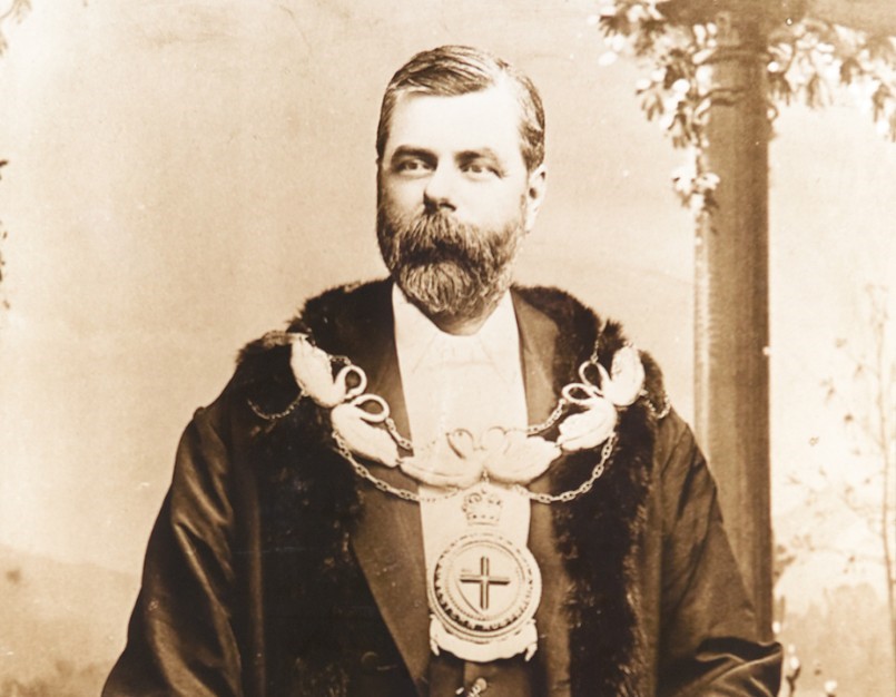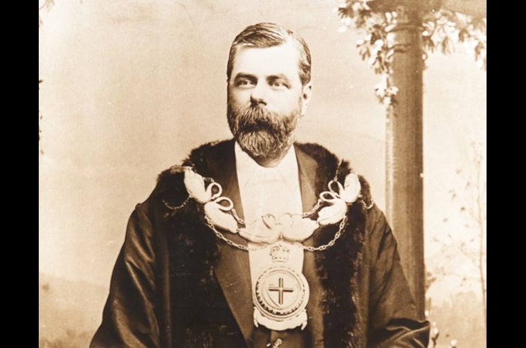 Untitled [Portrait, The Hon. Sir George Shenton KB MLC- 1st Mayor of Perth] Mayoral photograph, (detail), by C.S. Bardwell-Clarke, c.1880s, sepia photograph, 97 x 79 cm. City of Perth Cultural Heritage Collections.